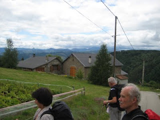 Nos petit groupe de huit marcheurs part de St Agrève par l'ancienne voie du Mastrou qui descent jusqu'a Intres où nous sommes contents de trouver l'abri des joueurs de boules pour casser la croute (météo maussade oblige)